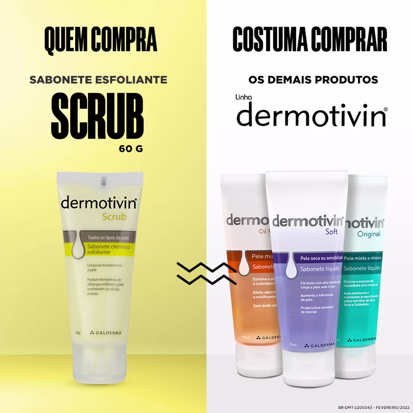O Esfoliante Facial Dermotivin Scrub possui fórmula que elimina as células mortas, estimula a renovação da pele e desobstrui os poros. Como resultado, proporciona uma pele mais uniforme, deixando uma agradável sensação de limpeza profunda e ajudando a prevenir cravos e espinhas.