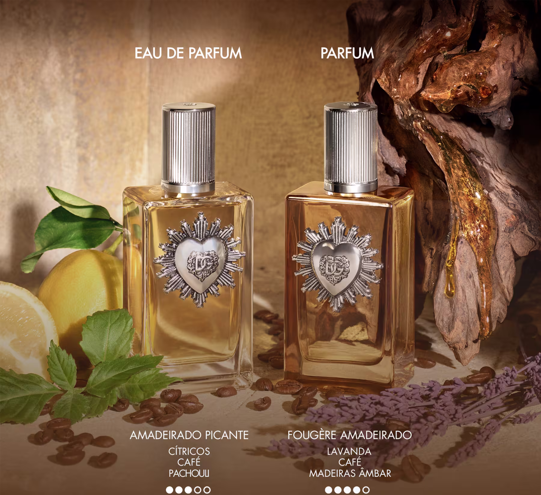 O Perfume Devotion For Men, de Dolce & Gabbana, traz um acorde fougère que simboliza força interior, determinação e devoção ao que verdadeiramente inspira o coração. Sua composição intensa traduz caráter, charme e presença, reforçada por um frasco de vidro laqueado adornado com o icônico Coração Sagrado da linha Devotion e finalizado com uma tampa prateada que acrescenta sofisticação e poder ao design.