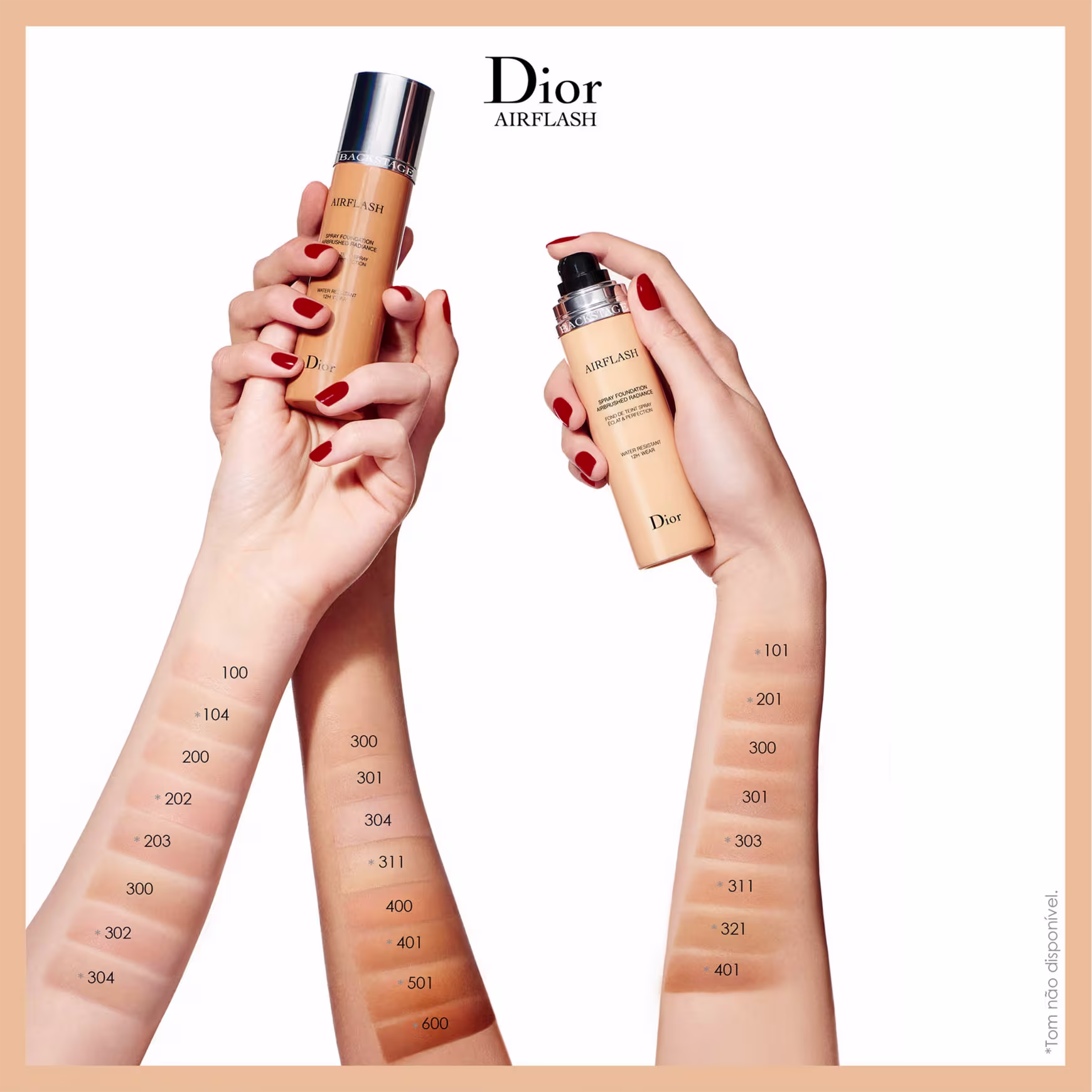 Base líquida em spray. Dior Backstage Airflash Spray Foundation possui acabamento aveludado radiante para uma pele perfeita e de longa duração. Inspirada nas técnicas de maquiagem usadas no backstage de eventos de moda.