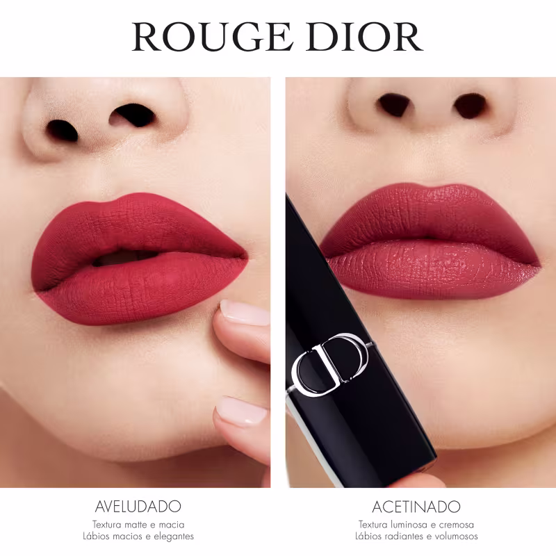 Batom de longa duração com acabamento aveludado, acetinado, matte ou metálico. Rouge Dior, o icônico batom da Maison Dior, proporciona efeito confortável, com cores de alta costura bem pigmentadas e de excelente luminosidade.