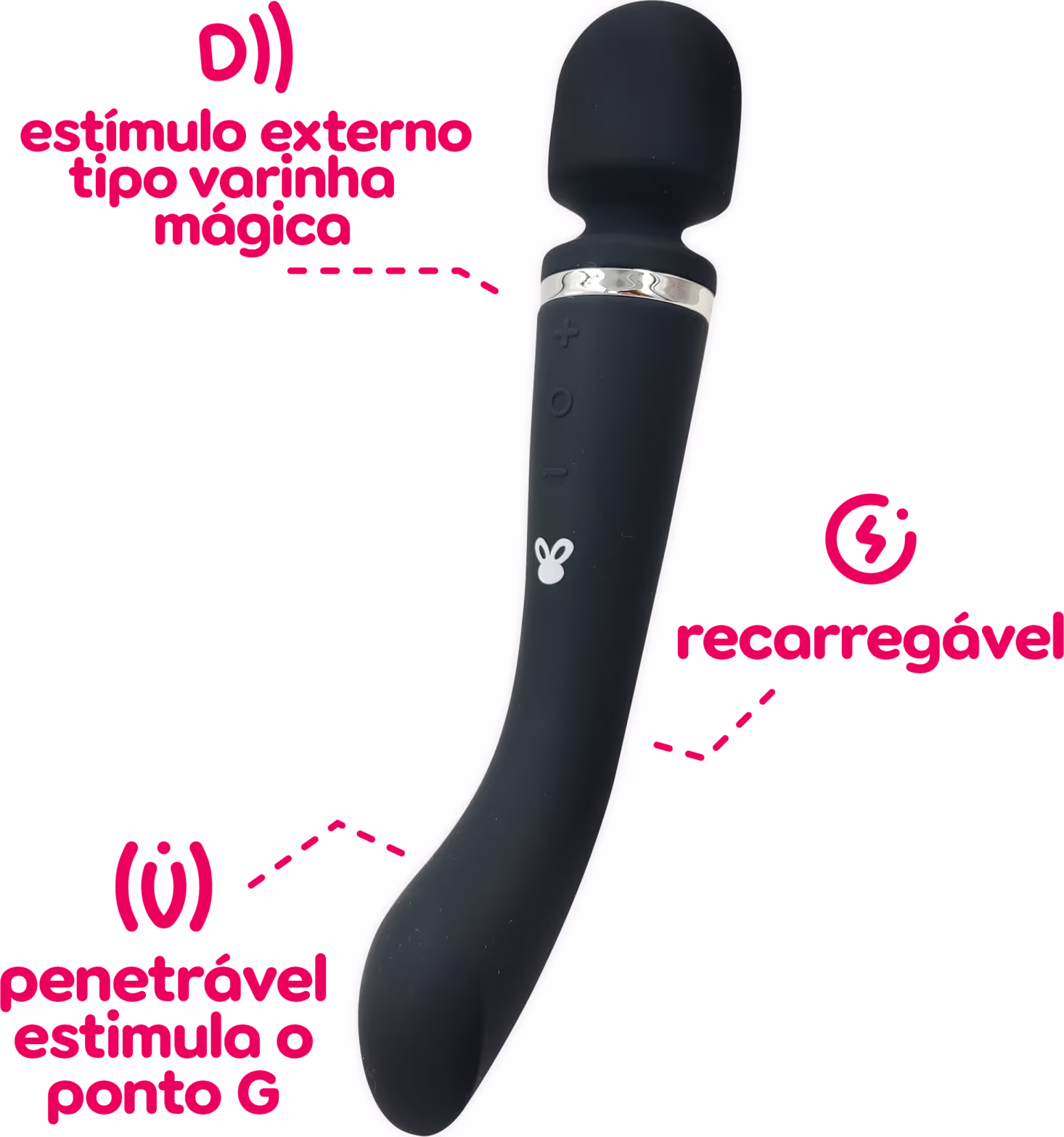 Vibrador. Dona Coelha Bamba possui formato duplo com 2 vibradores em 1: Ponto G e Varinha Mágica.