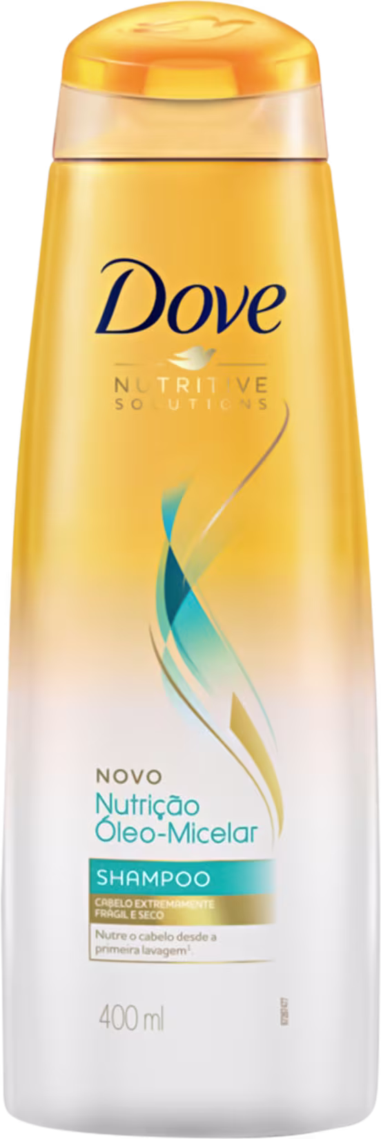 Shampoo para todos os tipos de cabelo. Dove Nutrição Óleo-Micelar Shampoo proporciona leveza, brilho e força desde a primeira lavagem. Possui a tecnologia tradicional de Dove, com ¼ de creme hidratante, e protege o cabelo por até 48h do ressecamento.
