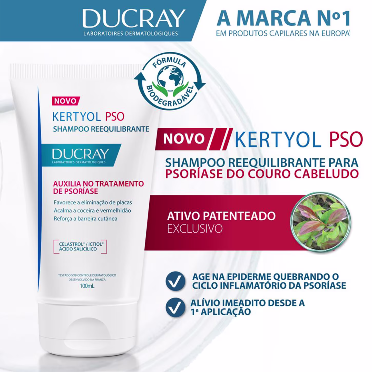 O Shampoo Ducray Kertyol PSO favorece a eliminação de placas e reforça a barreira cutânea. Ele atua contra estados descamativos em placas, que são resultado de um processo acelerado de renovação celular das células do couro cabeludo. A fórmula age de forma eficaz e duradoura graças à sua combinação exclusiva de ativos, promovendo alívio imediato desde a primeira aplicação.