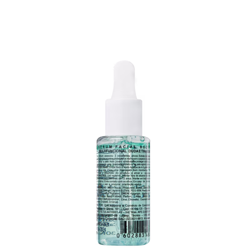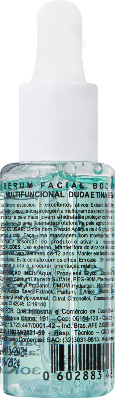 O Sérum Duda e Tina Vegan Beauty Booster Multifuncional associou 3 excelentes ativos: Extrato de Cafeína, Niacinamida e D-Pantenol que juntos protegem e melhoram o aspecto da pele do rosto, contribuindo para uma pele mais jovem e hidratada.