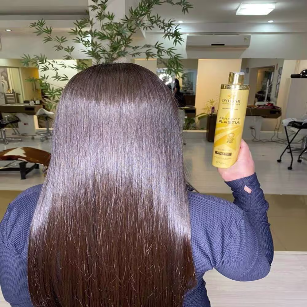 Escova progressiva para todos os tipos de cabelo. Dyusar Perfect Plastia promove cabelos mais lisos e alinhados.