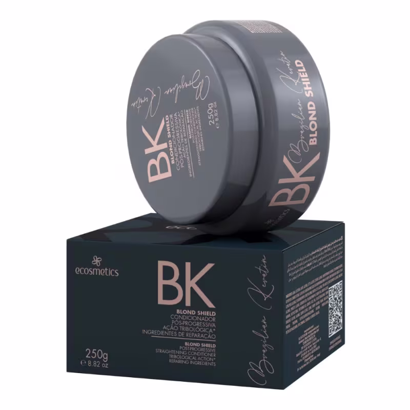 Máscara capilar para cabelos loiros e danificados. Ecosmetics Brazilian Delux Keratin Blond Shield recupera a saúde dos fios, proporcionando mais beleza.
