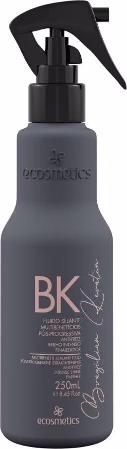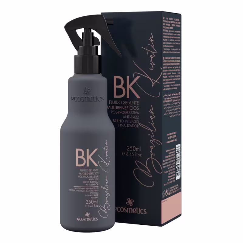 Fluido selante para cabelos danificados e desidratados. Ecosmetics Brazilian Delux Keratin garante uma finalização bonita e saudável.
