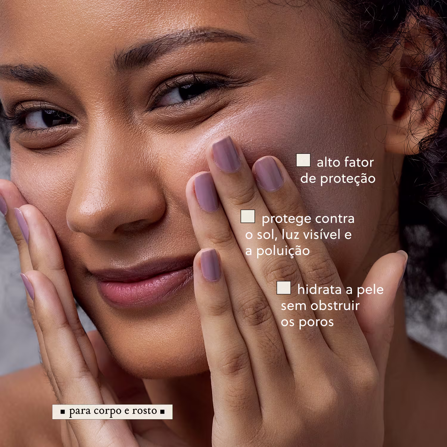 Seu FPS de 30 e UVA de 28 estão além do recomendado pela ANVISA, garantindo uma proteção robusta e equilibrada contra os raios nocivos do sol, mantendo a pele jovial e com vitalidade, longe de danos. Além disso, também hidrata a pele e atenua marcas, atendendo a todos os tipos de pele, de crianças a peles maduras, sem deixar resíduos esbranquiçados ou irritar os olhos.