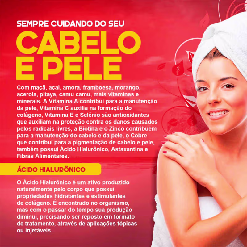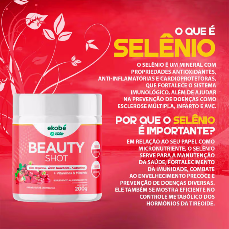 O Suplemento Vitamínico Ekobé Beauty Shot Sabor Frutas Vermelhas é seu aliado completo e saboroso para cuidar da pele e cabelos de forma eficaz e prazerosa. Com uma combinação única de vitaminas, minerais e antioxidantes como A, C e E, este suplemento nutre profundamente sua pele, mantendo-a radiante e firme, enquanto fortalece seus cabelos, promovendo um crescimento acelerado e brilhante. Combate os radicais livres responsáveis pelo envelhecimento precoce, garantindo uma pele suave e cabelos vibrantes. Experimente o sabor irresistível de frutas vermelhas e transforme seu ritual de beleza em um verdadeiro prazer diário.