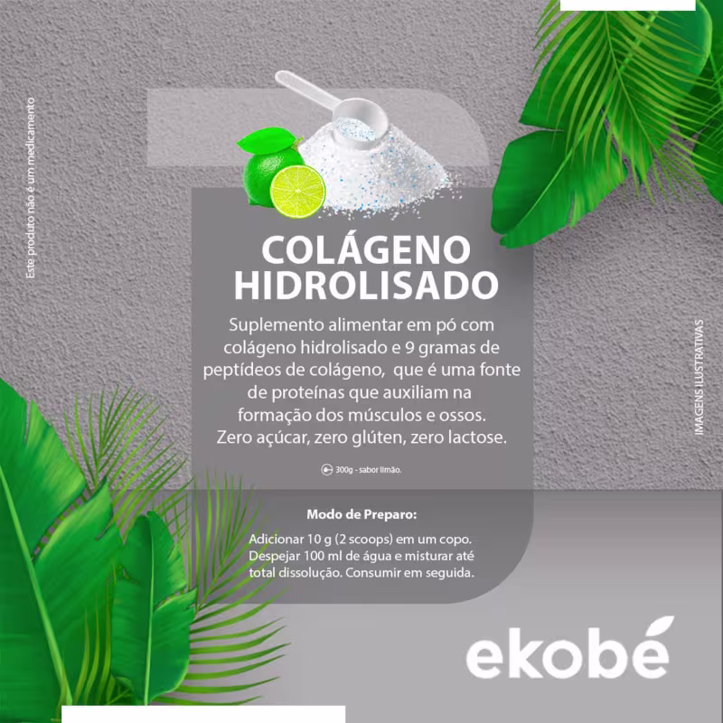 Suplemento vitamínico em pó. Ekobé Colágeno Hidrolisado Sabor Limão intensifica a beleza natural, cuidando dos seus cabelos, pele e unhas.