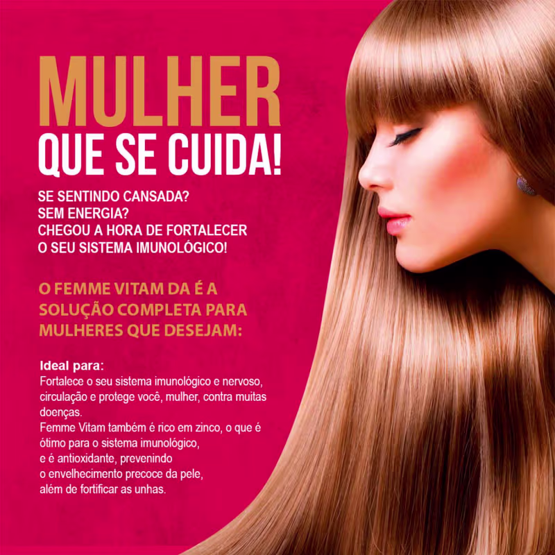 Suplemento vitamínico para pele e unhas. Ekobé Femme Vitam confere mais disposição, saúde e energia para as mulheres.