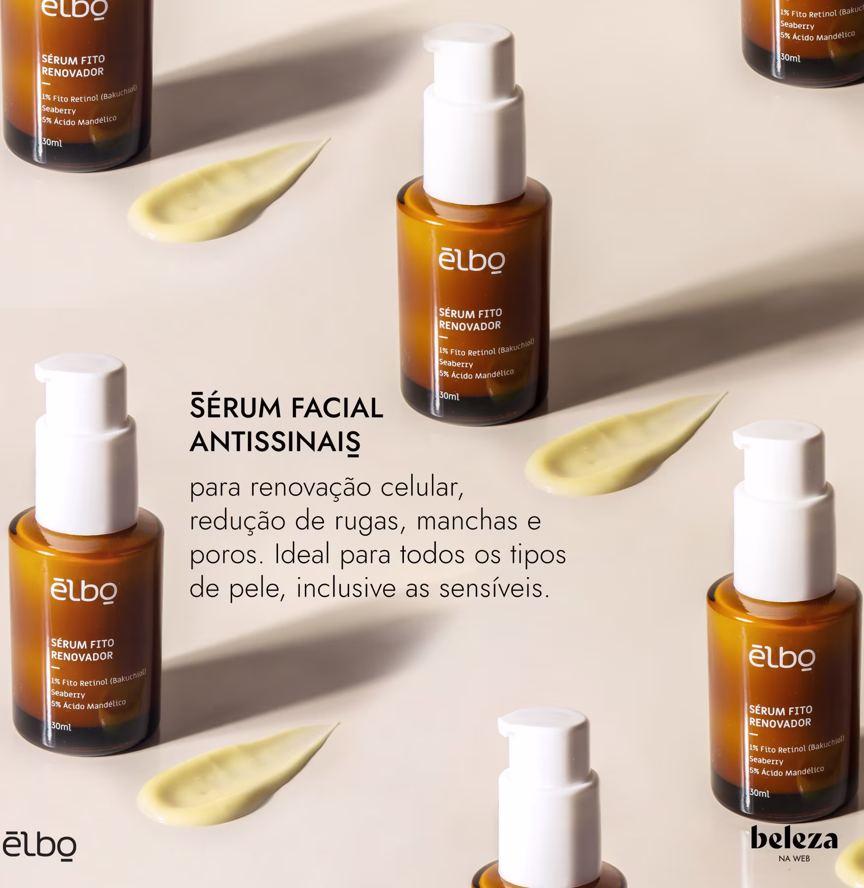 Sérum facial. Elbo Fito Renovador é ideal para todos os tipos de pele, inclusive as mais sensíveis.