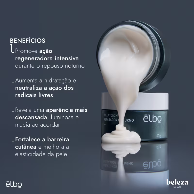 Creme Reparador Noturno Elbo Melatonin: para restaurar a pele e reparar os danos do estresse diário. Melhores Cremes Reparadores de Elbo na BLZ. Ver mais ❯