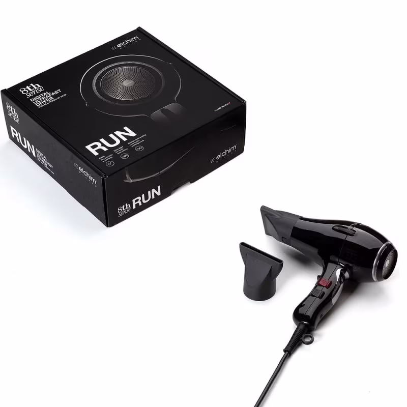 O Secador de Cabelo Elchim 8th Sense Run Black 220V revela uma nova geração com um inovador, muito leve e duradouro motor digital brushless (BLDC TECHNOLOGY) inteiramente fabricado na Itália. Testado para mais de 5.000 horas de uso, ele é extremamente leve. O que reduz risco de túnel do carpo e minimiza o tempo de secagem.