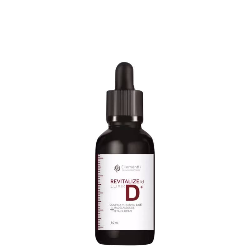 O Sérum Facial Ellementti Dermocosméticos Revitalize Elixir D+ oferece uma solução completa para peles sensíveis e danificadas, combatendo os sinais do tempo e promovendo uma hidratação profunda. Sua fórmula inovadora, com Complex Vitamin D-like, Madecassoside e Beta-Glucano, atua na redução da vermelhidão, coceira e descamação, fortalecendo a barreira cutânea e prevenindo a perda de água. Seu uso modula a imunidade da pele, combatendo inflamações e protegendo contra os radicais livres, principais causadores do envelhecimento precoce. Testado dermatologicamente e indicado para todos os tipos de pele.