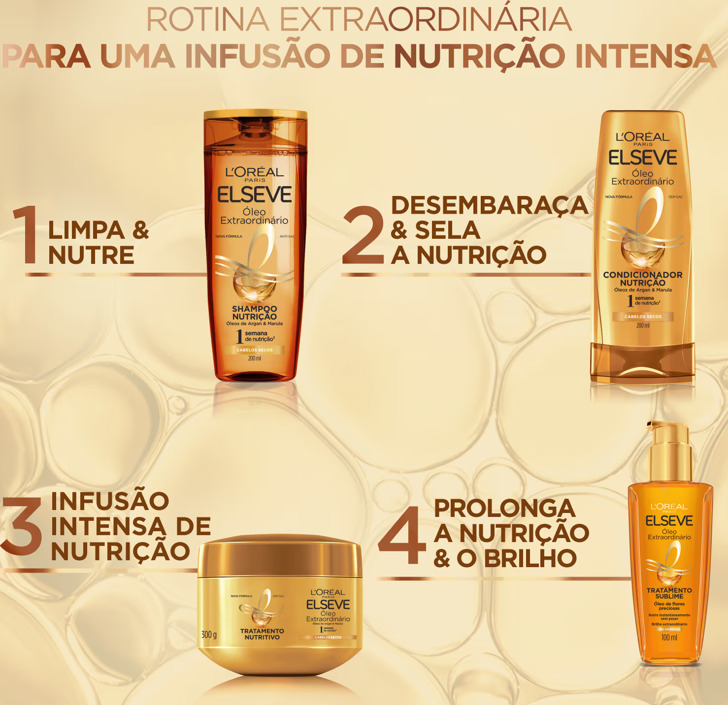 Shampoo para cabelos secos ou ressecados. Elseve L'Oréal Paris Óleo Extraordinário remove as impurezas, retomando o brilho natural dos fios, além de garantir nutrição intensa, leveza e vitalidade para fios leves e maravilhosos.