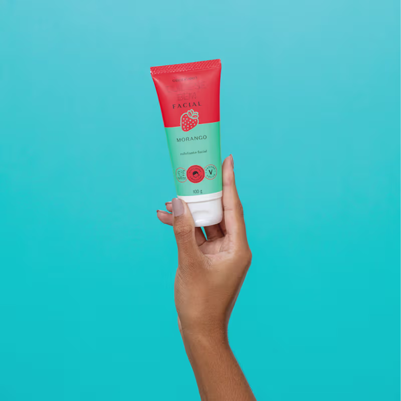Para uma rotina mais prática, leve e sustentável, o Esfoliante Facial Cuide-se Bem Feira Morango traz a diversidade de uma feira para você se cuidar!
