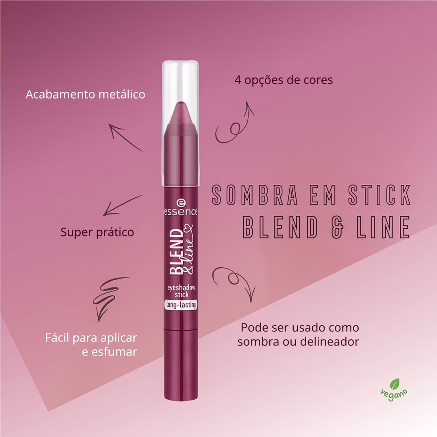 Sombra em bastão. Essence Blend & Line é super versátil, pode ser usado como sombra ou delineador, realçando seu olhar de um jeito incrível.