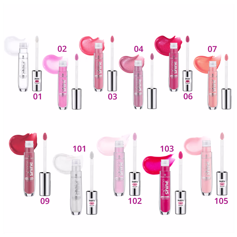 Gloss labial. Essence Extreme Shine proporciona máximo volume, efeito preenchedor, brilho radiante e aspecto molhado.