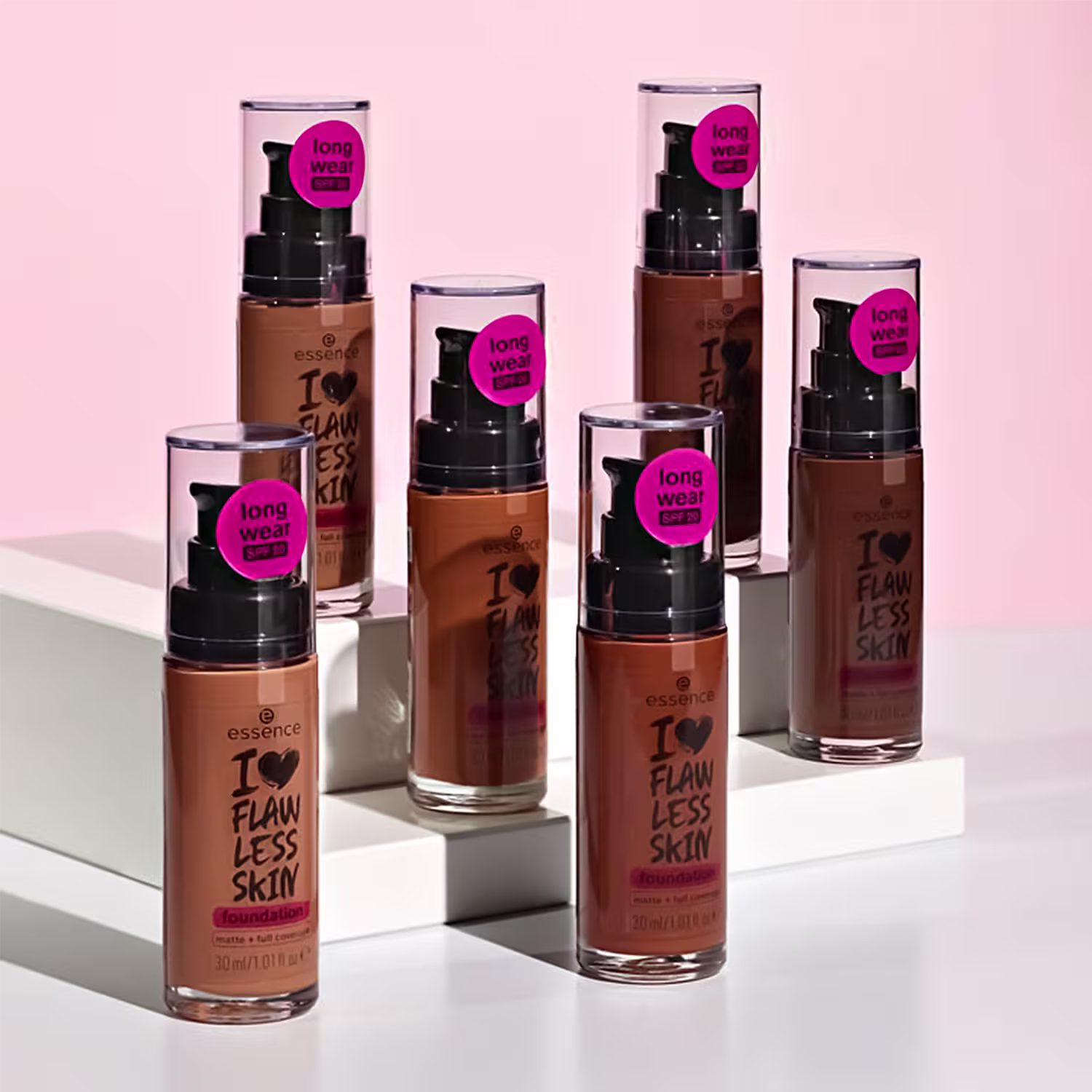 Base líquida. Essence I Love Flawless Skin oferece um acabamento matte e natural, deixando a pele uniforme e ainda protegendo-a.
