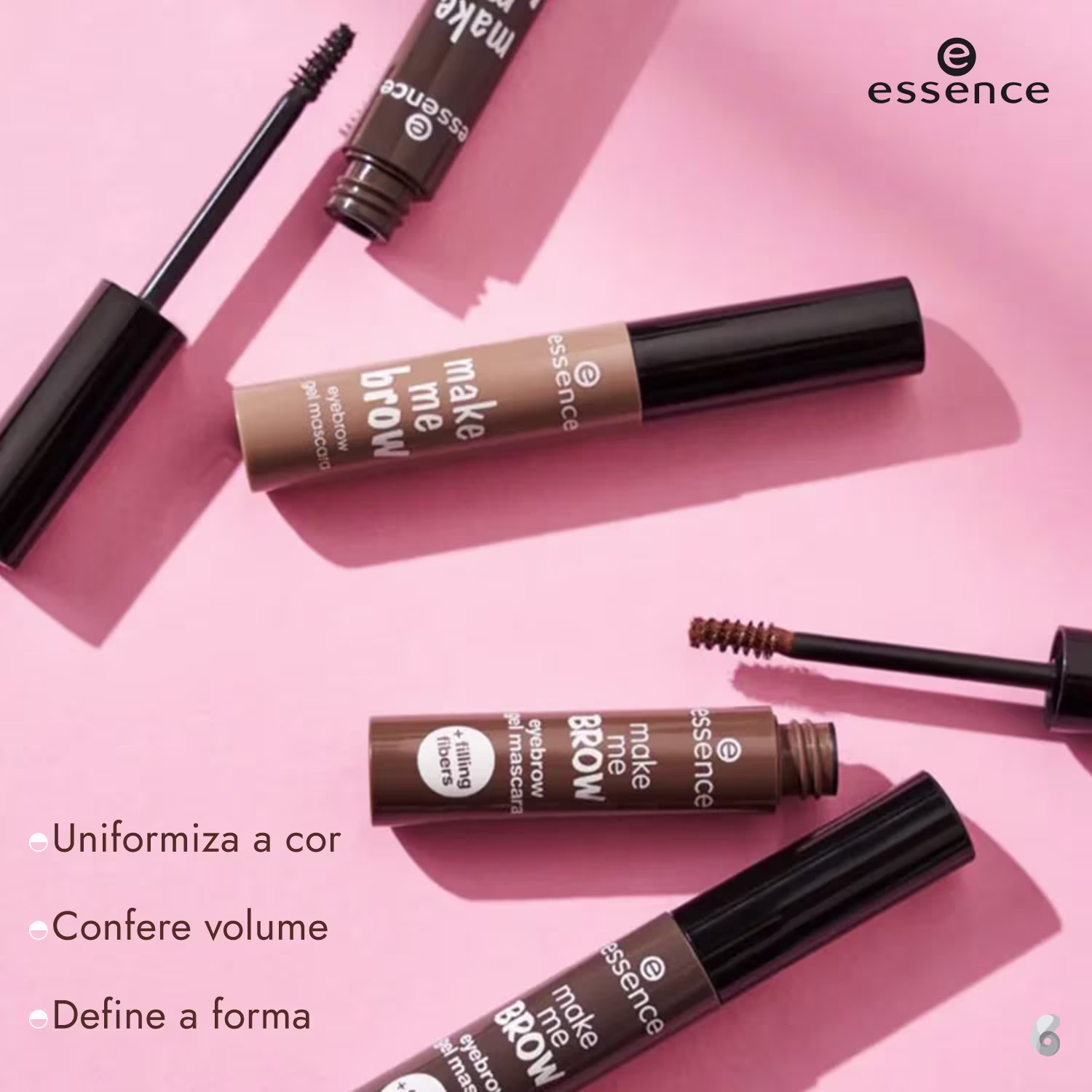 Máscara para sobrancelhas. Com ação 3 em 1, Essence Make Me Brow uniformiza, aumenta o volume e ajuda a definir a forma das sobrancelhas.