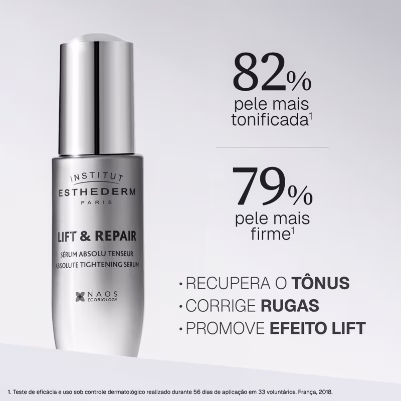Sérum Esthederm Lift & Repair Absolute Tightening, para uma pele mais firme, iluminada e com contorno redesenhado. Melhores Redutor de Linhas Esthederm na BLZ Ver mais ❯