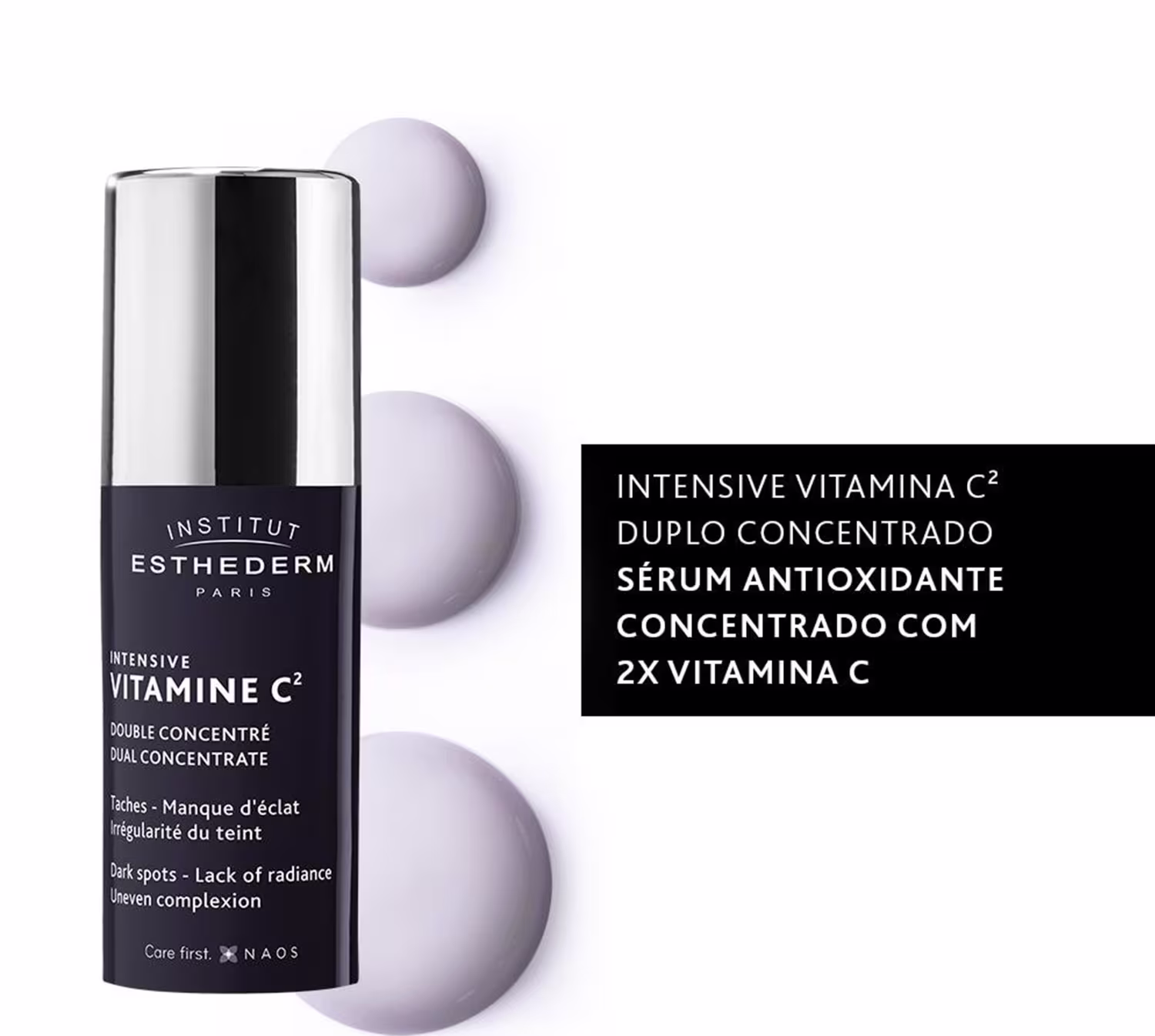 O Sérum Facial Esthederm Intensive Vitamine C² é o 1º sérum antioxidante com duas formas de Vitamina C: 10% de Vitamina C pura, que tem uma potente ação antioxidante e 2% Pró-Vitamina C de liberação prolongada, que tem uma ação Redutor de Linhas duradoura. O produto conta com uma textura leve e de absorção imediata, além de dupla dose e dupla eficácia contra os sinais da idade.