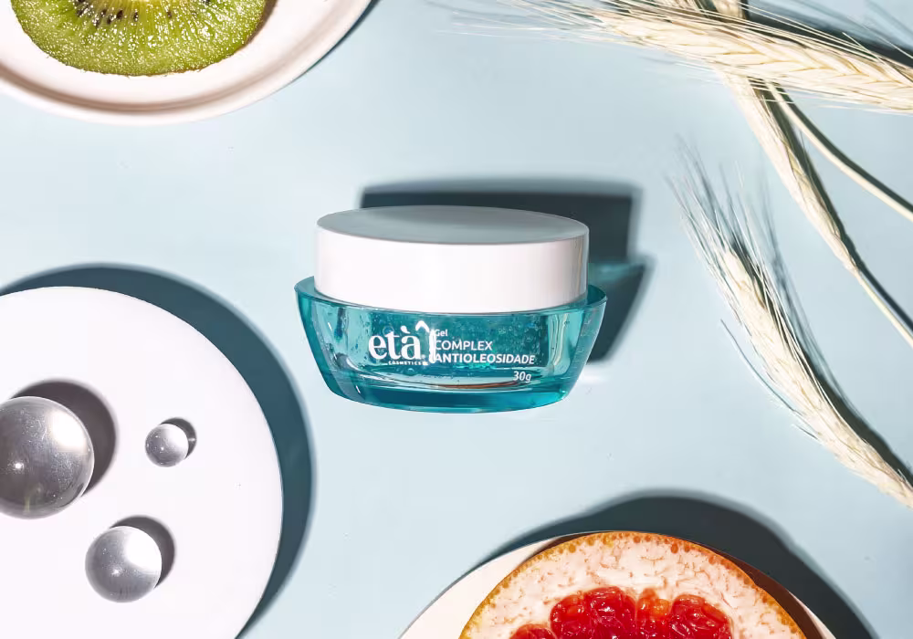 O Gel Antioleosidade Età Cosmetics Complex contém vitaminas nanoencapsuladas, que se dissolvem na pele, liberando as formas mais potentes das Vitaminas A, C e E.