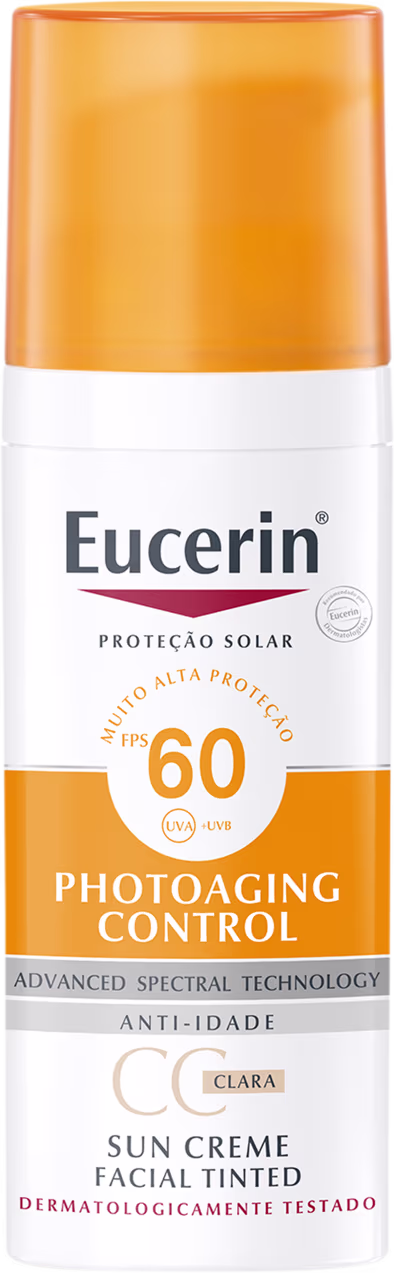 CC Cream Eucerin Sun Creme Tinted FPS 60, oferece cobertura uniforme e proteção solar. Melhores BB Cream e CC Cream Eucerin na BLZ Ver mais ❯