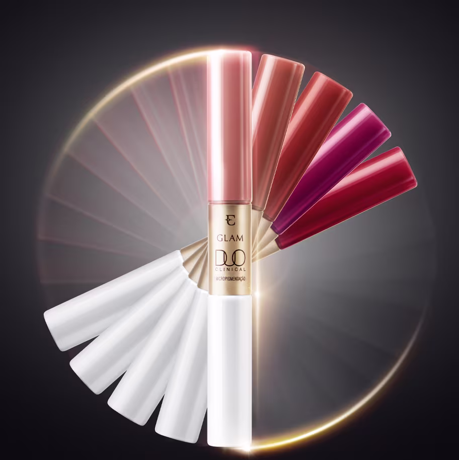 Batom Líquido Eudora Glam Duo Clinical apresenta uma tecnologia exclusiva e fórmula com 8x mais Ácido Hialurônico, oferecendo efeito preenchedor lifting e micropigmentação labial. O resultado é um tratamento inovador que preenche e redefine o contorno dos lábios, promovendo mais firmeza e elasticidade.