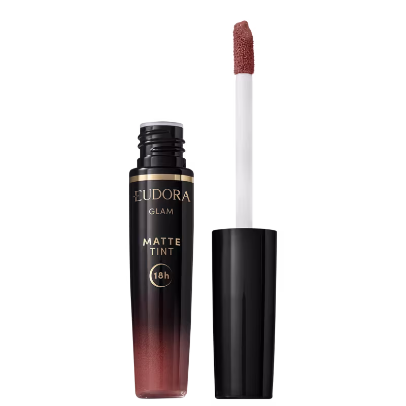 Batom líquido com acabamento matte. Eudora Glam Matte Tint garante 18 horas de duração, sem retoque e agora com ativos de tratamento!