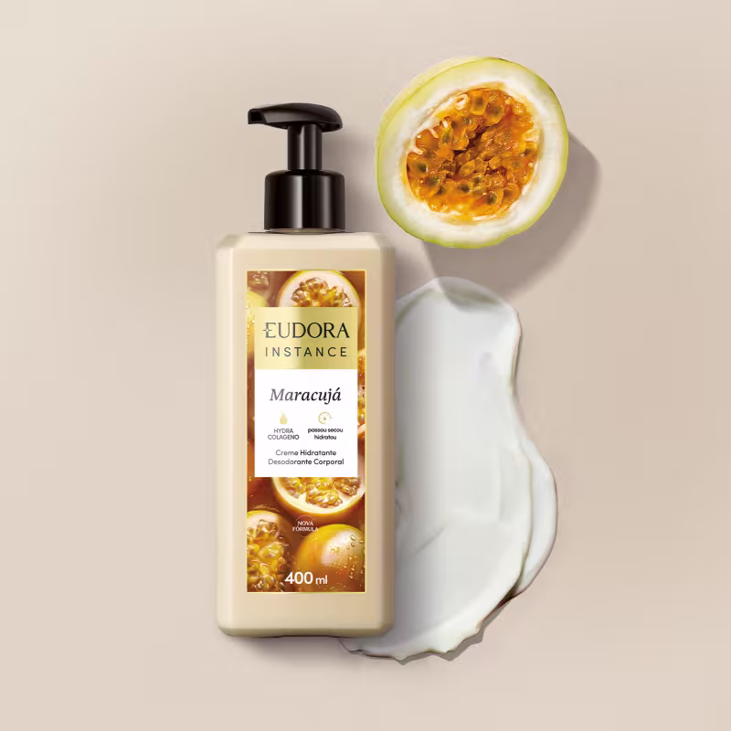 Não sei o CEPCreme Hidratante Corporal. Eudora Instance Maracujá possui textura cremosa e perfumação intensa, com uma fragrância floral alegre e deslumbrante.