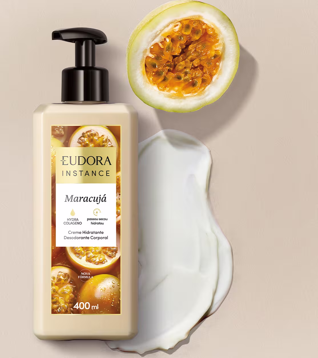 Não sei o CEPCreme Hidratante Corporal. Eudora Instance Maracujá possui textura cremosa e perfumação intensa, com uma fragrância floral alegre e deslumbrante.