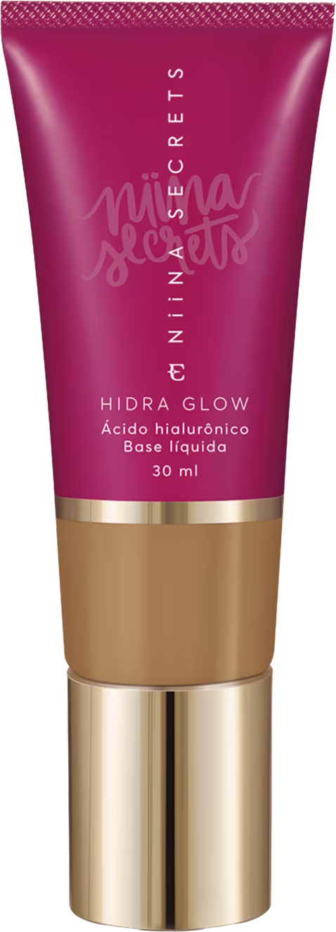 A Base Líquida Eudora Niina Secrets Hidra Glow traz 17 tons que representam a diversidade brasileira. Fórmula enriquecida com ácido hialurônico de última geração e a exclusiva tecnologia Secrets, que hidrata e ilumina, além de dupla proteção contra luz azul e FPS16/UVA+++. Sua textura deixa uma sensação confortável, com viço natural, fragrância encantadora e sem deixar a aparência oleosa.