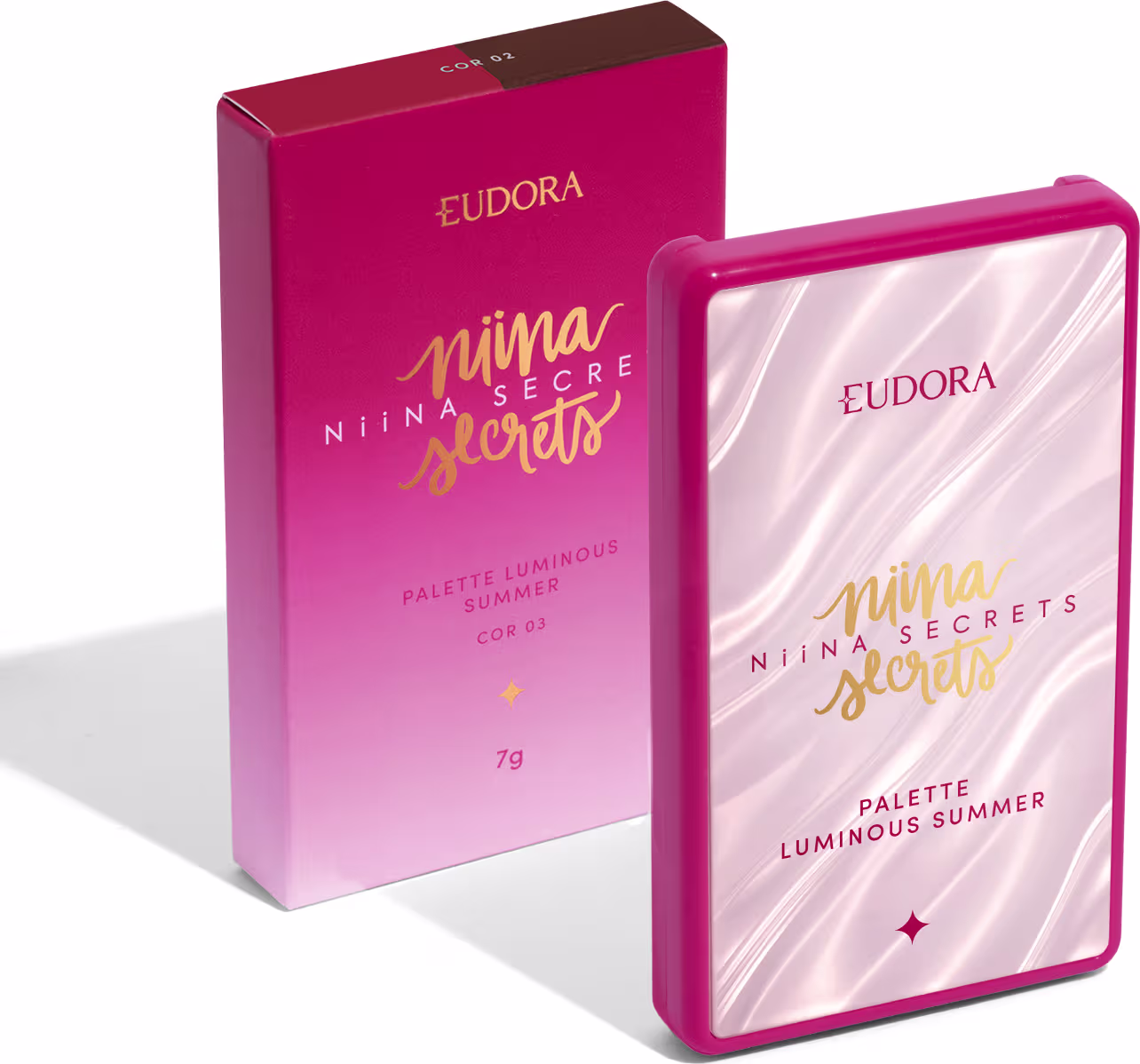 Paleta Multifuncional Eudora Niina Secrets Luminous Summer para um glow que é a cara do verão. Melhores maquiagens Eudora na BLZ. Ver mais ❯