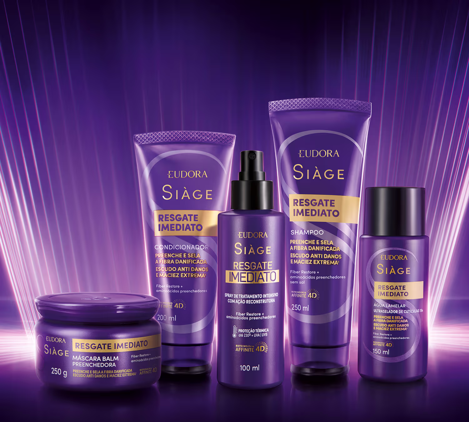 A Máscara Balm Preenchedora Eudora Siàge Resgate Imediato age atuando na recuperação dos danos desde o 1º uso. A linha é dedicada para todos os tipos de cabelos, especialmente danificados, e conta com a exclusiva Biotecnologia Affinité 4D e ativos pensados para reconstruir seus fios.