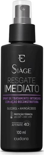 Leave-in para cabelos danificados. Eudora Siàge Resgate Imediato traz multibenefícios para restaurar os fios danificados desde o 1º uso.