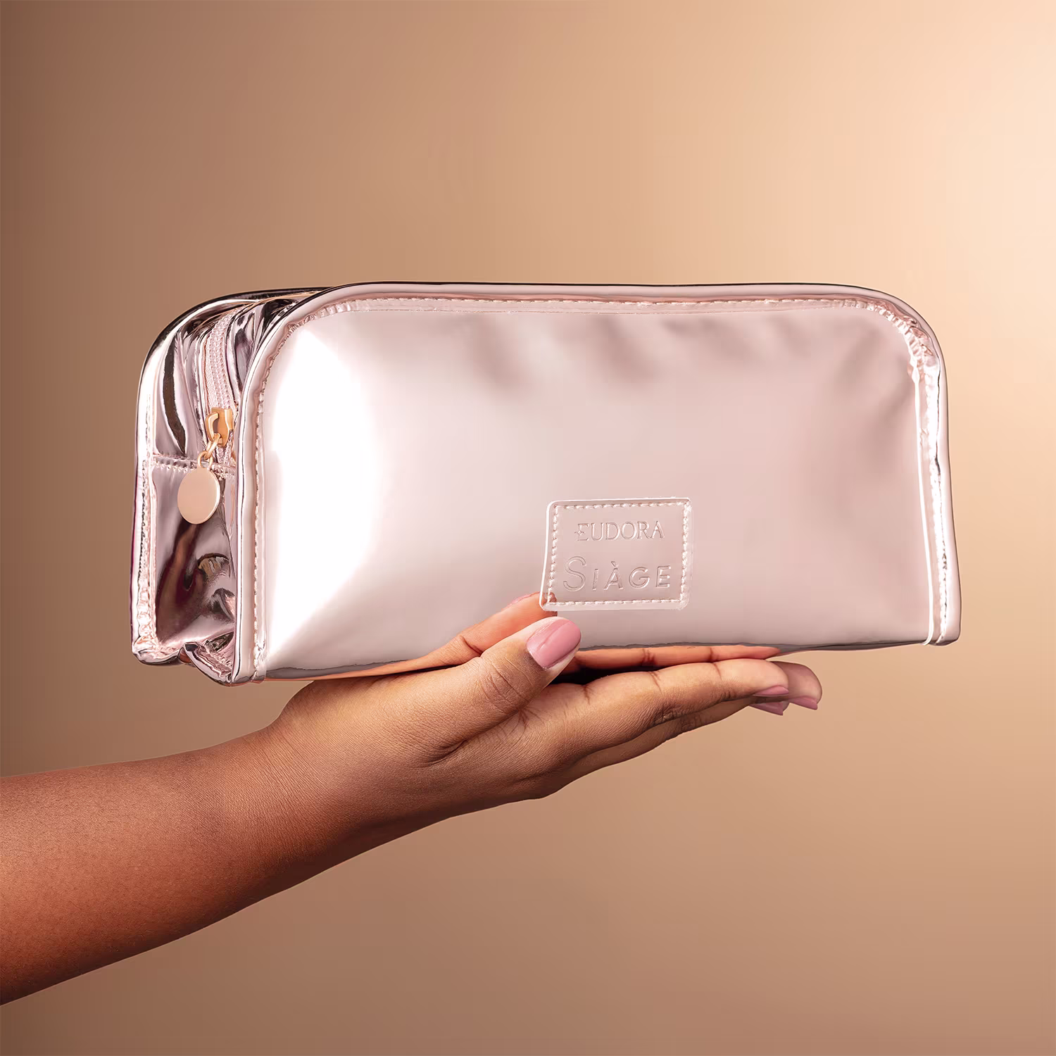 Não sei o CEPNécessaire metalizada. Eudora Siàge Rose Gold Metalizado é compacta e espaçosa, com zíper, forro prático e design elegante para organizar itens de beleza.