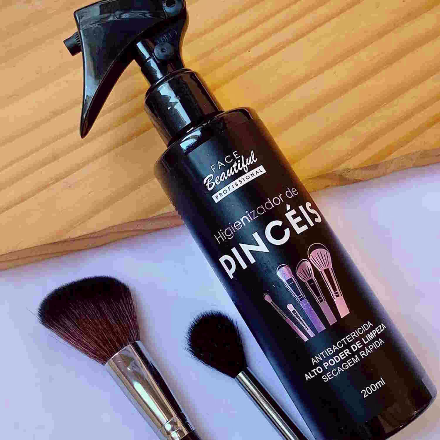 Spray higienizador de pincéis. Face Beautiful possui um alto poder de limpeza, perfeito para manter seus pincéis limpos e conservados.