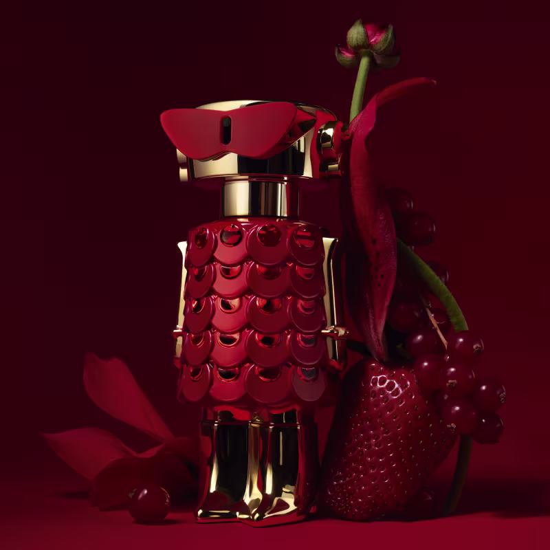 O Perfume Fame In Love Elixir, de Rabanne, apresenta-se como a assinatura feminina mais deliciosa e intensa já criada pela marca. O grande protagonista desta fragrância é o extrato de morango super suculento, que injeta uma dose de diversão e desejo ao perfume, transformando o espírito da it-girl parisiense em uma nova e magnética linguagem do amor.