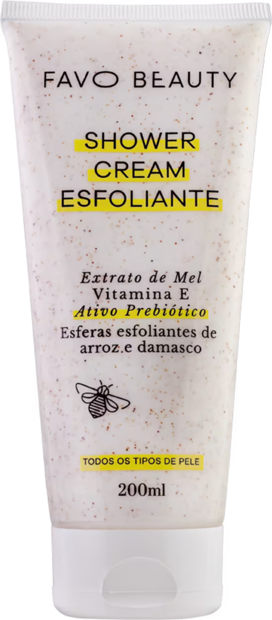O Esfoliante Corporal Favo Beauty Shower Cream conta partículas naturais de esferas de damasco e arroz que proporcionam uma esfoliação suave que não agride a pele. Ao mesmo tempo que esfolia a pele, hidrata e estimula a proliferação de bactérias boas, melhorando o sistema imunológico e protegendo nosso corpo de doenças.