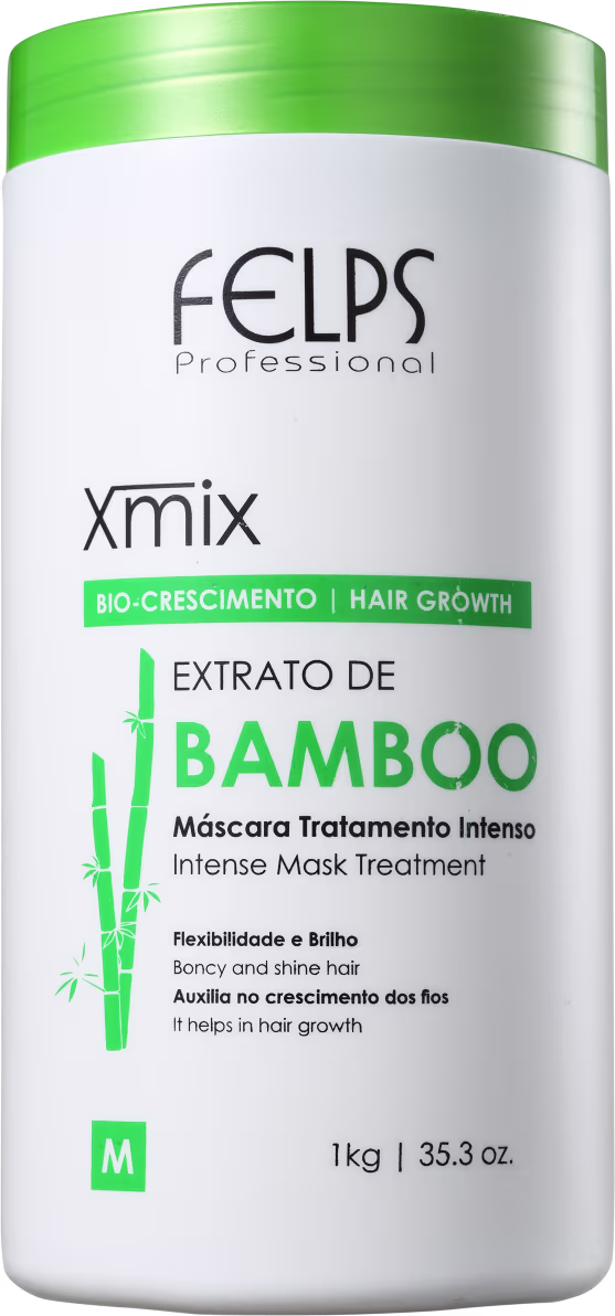 Felps Professional XMix Bio-Crescimento Extrato de Bamboo Máscara possui tecnologia de nano complexos de oligoelementos e proteínas hidrolisadas que trata intensamente a fibra capilar para proporcionar um crescimento saudável do cabelo.
