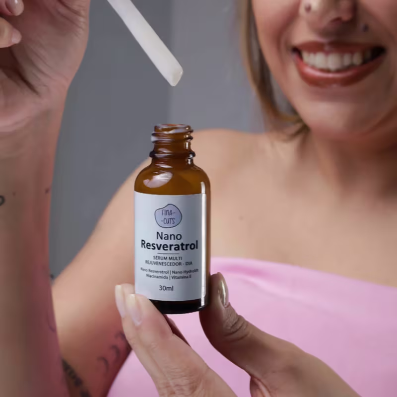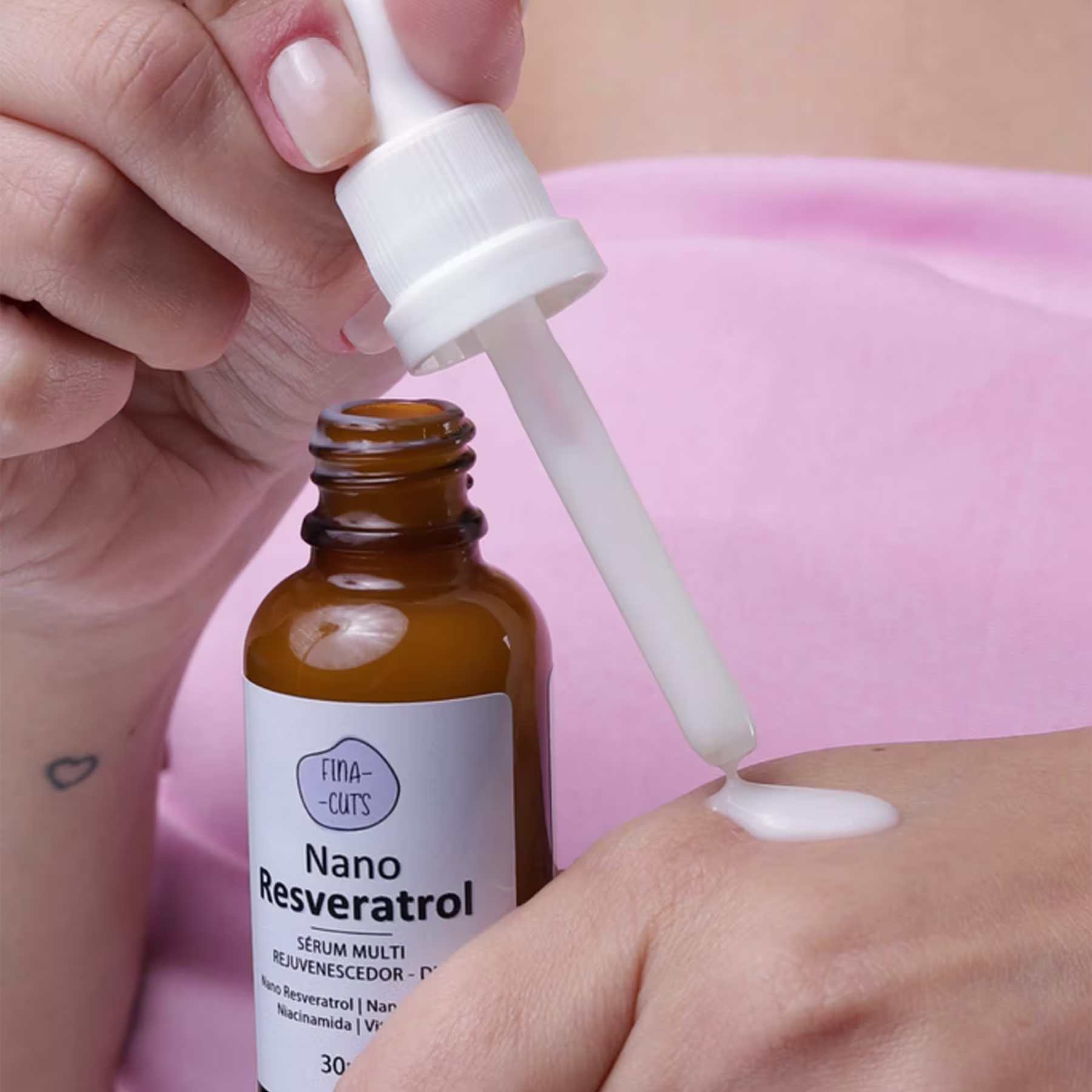 Sérum facial para todos os tipos de pele. Fina Cut's Nano Resveratrol devolve a vitalidade, hidrata, ilumina e uniformiza a pele.