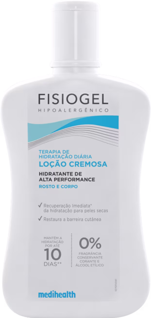 Loção cremosa hidratante para peles secas e sensíveis. Fisiogel Terapia de Hidratação Diária ajuda na recuperação da umectação e da suavidade cutânea do corpo logo na primeira aplicação, para uma aparência com textura mais nutrida, saudável e macia.