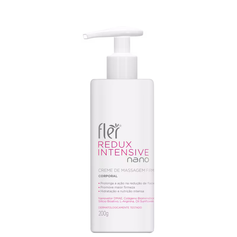 Creme de massagem corporal. Flér Dermocosméticos Redux Intensive ajuda no tratamento de flacidez e firmeza da pele, com alta capacidade de permeação cutânea devido ao ativo nanotecnológico presente em sua composição.