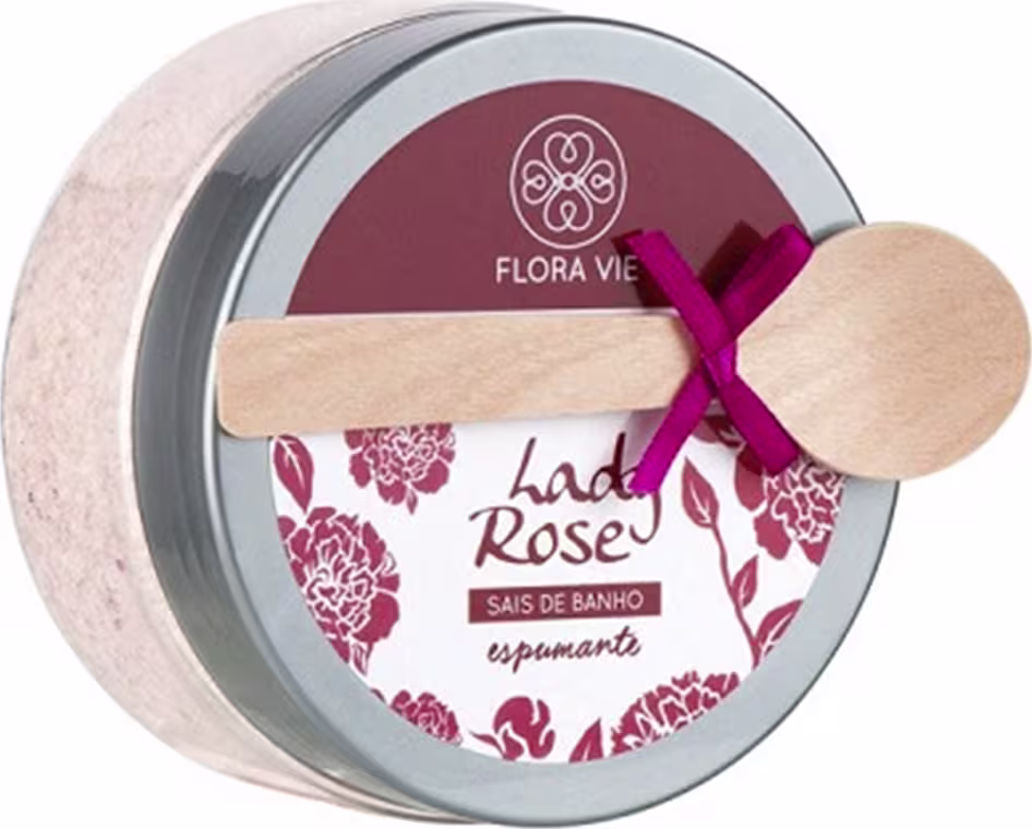 Sais de banho espumante. Flora Vie Lady Rose é ideal para a imersão em banheiras ou para a realização de escalda-pés.