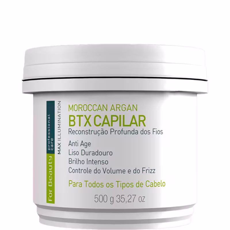 Btx capilar para cabelos secos, volumosos, crespos e com frizz. For Beauty Max Illumination Reconstrução Profunda é um tratamento 100% natural para efeito liso por até 3 meses.