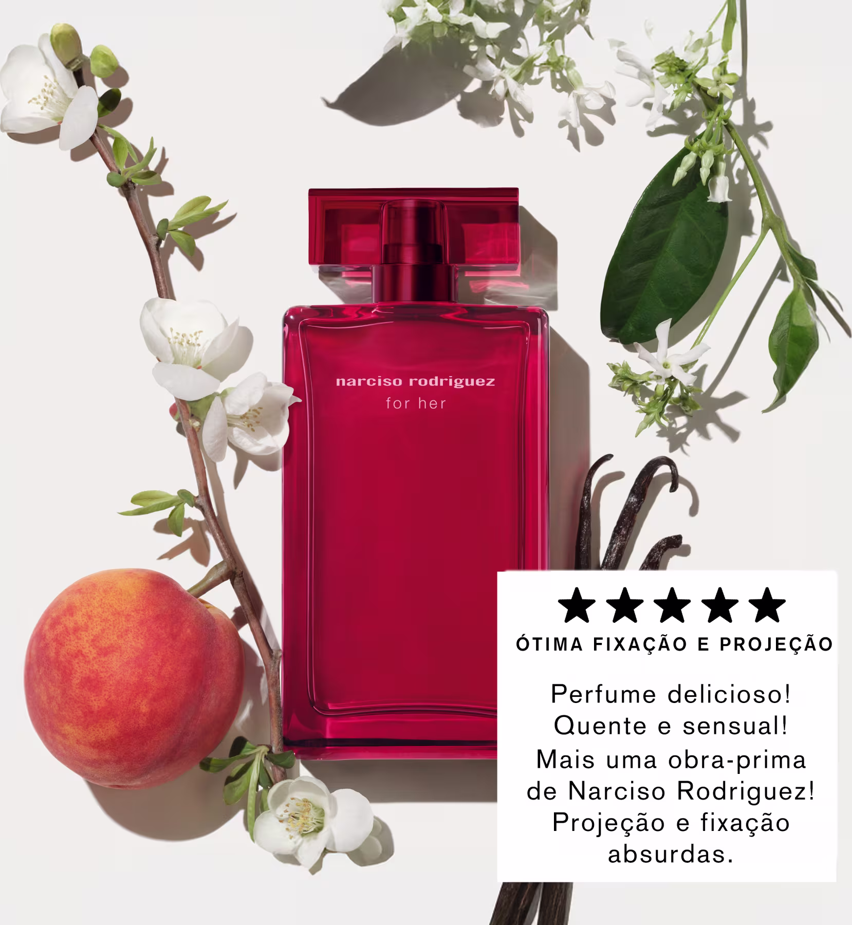 O Perfume For Her Intense, de Narciso Rodriguez, é uma fragrância feminina sofisticada que combina notas de frutas e flores, criando um aroma fresco e sensual. Celebra o icônico coração do Almíscar, intensificando a essência para criar um aroma cativante infundido com Flores Brancas e Baunilha. As notas de base proporcionam uma sensação de calor e intimidade, tornando-o perfeito para quem busca um perfume que seja ao mesmo tempo fresco e sensual.
