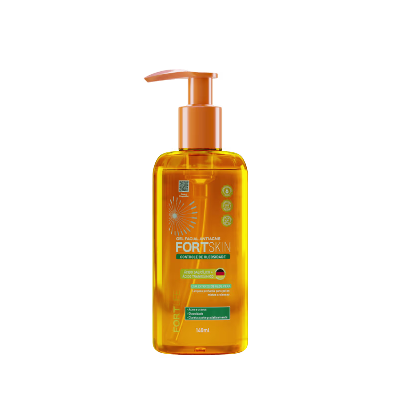 O Sabonete Facial em Gel FortLife Pharma Oil Control FortSkin oferece limpeza profunda e controle absoluto da oleosidade para peles mistas a oleosas, combinando Ácido Salicílico para desobstruir poros e combater acne e cravos, Ácido Tranexâmico para uniformizar o tom e reduzir manchas, e Extrato de Aloe Vera para acalmar e nutrir a pele a cada lavagem. Sua fórmula equilibrada remove impurezas sem ressecar, proporcionando sensação de frescor imediato, reduzindo o brilho e deixando a pele mais limpa, macia e equilibrada.