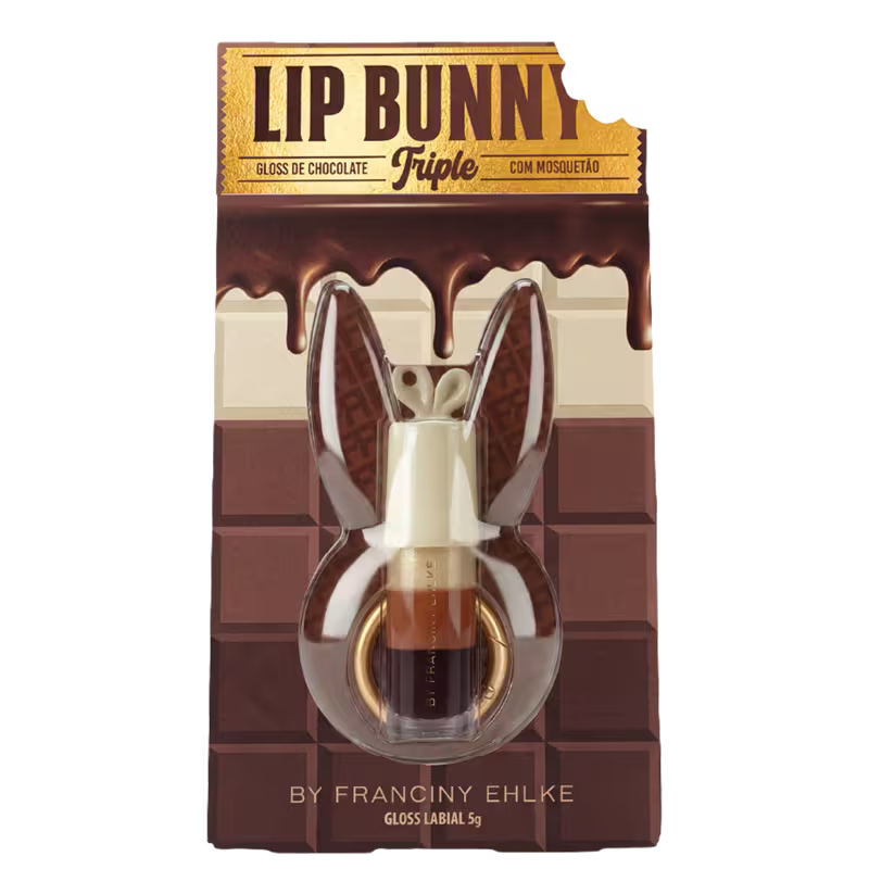 Gloss labial com três cores para escolher. Fran by Franciny Ehlke Lipbunny Triple proporciona um visual delicioso inspirado no mundo dos chocolates.